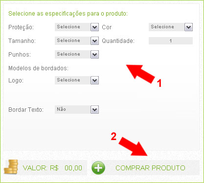 1- Escolha as características do produto.