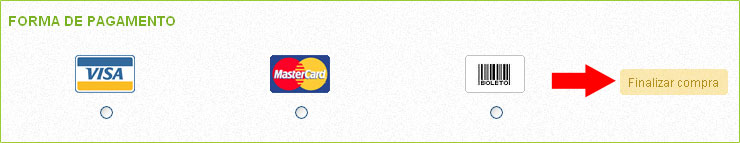 Após conferir todos os dados da compra que aparecerão na sua tela (produtos e dados de entrega), escolha a forma de pagamento